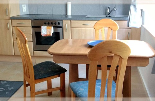 We offer our apartment since July 2017: The 60sqm apartment is located in 1. Floor of our house, over a large pre-corridor you reach the lovingly furnished, very well maintained apartment. From the living room, the balcony is walkable - Südlage- here the sun accompanies you until the evening hours. The living room is equipped with W-Lan and cable TV. All windows are equipped with exterior shutters, for the late cooler autumn evenings it provides underfloor heating with pleasant temperatures. To protect against insects, the windows are partially equipped with insect protection. The balcony door has this equipment.