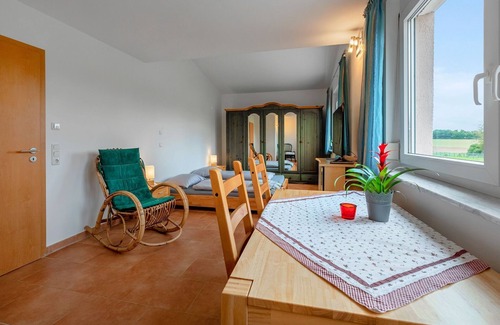 The horse breeding is outside the village, in a quiet location. The wonderful riding area also invites you to go hiking or cycling. The centre is 1.5 km from the house and you can buy daily supplies at the supermarket 5 km from the stay.