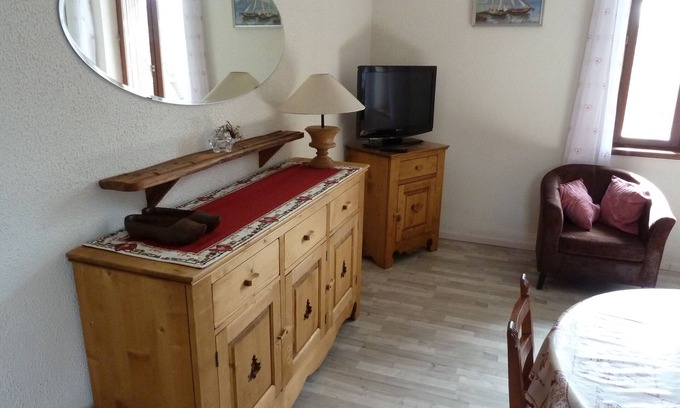 Apartment with all comfort. Washing machine and dishwasher, raclette, fondue, TV, cd player. Living room and kitchen open on 30 m², a room with a bed of 140 cm, a room with 2 beds of 90 cm, a small bathroom with shower.