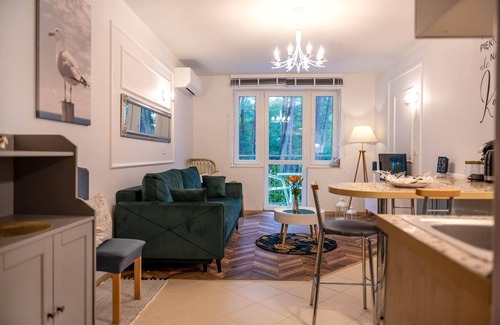 Intimate apartment building in a quiet place, surrounded by forest, on the edge of a seaside resort. The beach is 1 km away. The town centre is approx. 600 m away. A year-round, 2-level apartment with a balcony and a view of the forest. The lower level is located on the first floor of the building. There is a living room combined with a well-equipped kitchen and a bathroom with a shower. In the living room there is a double sofa bed and TV. On the upper level there is a bedroom (2 single beds). There is air conditioning with cooling and heating functions. Wireless internet is available. The price of your stay includes: electricity and water consumption, air conditioning, parking, internet. A cot and a high chair are available on request. Pobierowo is a holiday resort in the West Pomeranian Voivodeship. It is located on the shores of the Baltic Sea, in the centre of the picturesque Rewal Coast. As befits a seaside resort, Pobierowo offers tourists a clean beach and a guarded bathing area. There is also a fishing base here, which is great as a background for souvenir photos. Pobierowo is a great place for children, athletes and lovers. There are many romantic corners for two. There is a parrot house, oceanarium and giant inflatable playgrounds. Children will be delighted with a visit to the Whale Park in nearby Rewal (approx. 7 km). In worse weather, a trip to one of several public indoor pools will be an ideal option. The pride of the town and the entire region is the renovated narrow-gauge railway, which can be used for a charming trip to neighboring resorts.