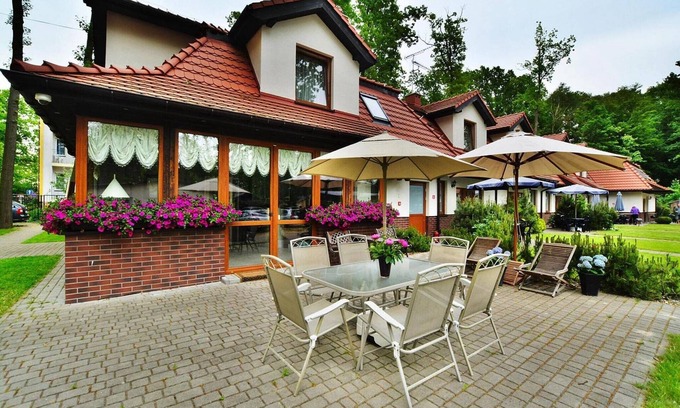 Recreation complex in Rewal, very close to the sea and the center of the resort. Only 150 m to the beach. Elegant and cozy apartments await you on the fenced property. There is a reception and parking on site. The 2-room apartment is designed to accommodate 3 people. It consists of a 3-person bedroom and a living room with a kitchenette. Bathroom with shower. The living room has a fold-out sofa (can accommodate an additional person for an additional fee), a table and a TV. The kitchenette is fully equipped. Wireless internet is available. The apartment is located on the ground floor and has direct access to the terrace with garden furniture. Central heating. There is access to a washing machine on site (for an additional fee). There is a playground with a trampoline for the youngest guests. Recreation enthusiasts will enjoy table tennis, table football and fitness equipment. The price of the stay includes: bed linen, electricity and water consumption, internet, parking, final cleaning. Rewal is a holiday resort in the West Pomeranian Voivodeship. It is located on the shores of the Baltic Sea and is the center of the picturesque Rewal Coast. It offers a clean beach and a guarded swimming area. Being near the beach, you must see the symbol of the town. These are the huge Rewal Whales standing on the promenade right next to the coast and on the viewing platform. Children will be delighted with a visit to the Whale Park, with real sea giants, and to the Fairy Tale Cottage, where they will meet face to face with fairy-tale characters. In bad weather, an ideal option will be a trip to one of several public indoor swimming pools. The Gibon Rope Park will also be fantastic entertainment for the whole family or a group of friends, offering a lot of obstacles to overcome suspended high in the treetops. Of course, with appropriate protection. The pride of the town is the renovated narrow-gauge railway, which allows you to go on a charming trip to neighboring resorts.