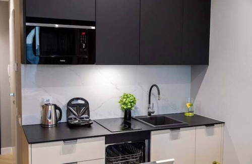 This charming apartment offers a comfortable space consisting of one room, which serves as both a bedroom and a living room. The room has a large comfortable bed, which ensures a comfortable sleep, as well as a cozy corner to relax. The kitchenette is well-equipped and allows you to prepare meals at any time. The apartment also has a private bathroom, which ensures comfort and intimacy during your stay. Additionally, with a family trip in mind, we also have a comfortable sofa bed. This is an ideal place for people traveling alone, in pairs or with a family, who are looking for a comfortable and functional place for a short or longer stay. The price of the apartment includes a viewing terrace offering unforgettable views and a swimming pool complex, which will complement your relaxation experience. It consists of a large swimming pool, jacuzzi, dry and steam sauna. The apartment is located in the very center of Szczecin in the modern Hanza Tower building. In the area there are tram and bus stops, a gallery, shops and restaurants. Additional services (for a fee) located in the building include: gym, massage parlor, medical area, beauty salon and hairdresser. The apartment has a balcony, work space (desk), equipped kitchenette, coffee maker, TV, Wi-Fi, air conditioning, iron, dryer, kettle, toaster, microwave. All beds have very high-class mattresses, the price includes bathrobes for the pool, large and small towels, welcome service, i.e. coffee capsules, tea, sweets, water.