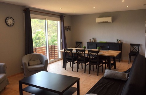 terrace with garden furniture and plancha. Air-conditioned SAM, sheets and towels are provided. Fully equipped kitchen, washing machine and dishwasher. The cottage is located in Var center, 2 minutes from Brignoles, 35 minutes from Toulon, 35 minutes from Aix, 1.15 from Nice. Nearest station toulon or aix tgv 1h, marignane airport or nice.