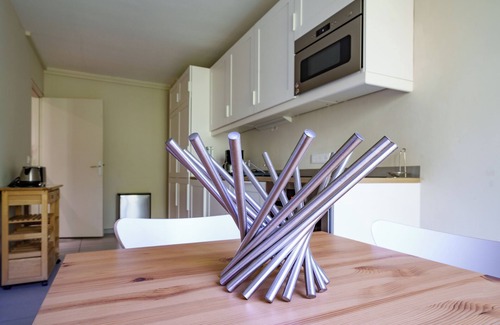 A spacious, well-equipped kitchen with filter coffee maker and Nespresso machine, kettle, toaster, dishwasher, microwave, electric oven and induction hobs, washing machine with drying rack. You can have lunch in the kitchen or in the living room.