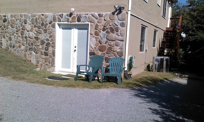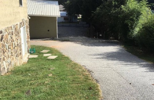 This duplex rental home in downtown Franklin is available for rent year round. This vacation home is a two bedroom/one bath upstairs (1500 sq. ft.), and the lower unit is a one bedroom/one bath (1200 sq. ft.) Home is within walking distance of shops, restaurants, museums, and entertainment on the square. Gem mines are as close as 5 minutes away. There is a fully equipped kitchen. Direct TV with HBO/Showtime is included when renting the property. Next to the house is a four-acre park with basketball court, picnic area, BBQ grills,children’s play gym, and walking paths for dogs. We are child and pet friendly!
