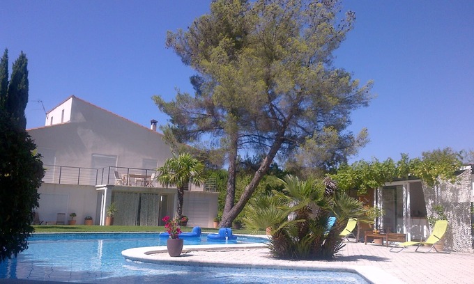 At the corner of our contemporary villa, the crossing apartment has a breathtaking view of the pool of 90 m2 fully tiled glass and surrounded by a beautiful lawn and the massif of the star and a terrace Totally private sunset setting on the other side! Endowed with a sunshine from one end to the other of the day, this very bright and luminous apartment will also be able to bring you all its natural freshness if you live in the provençale (we will explain you on the spot)! Ideal to relax and unwind!