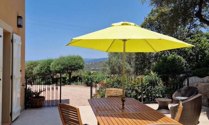 Household linen is provided and there is 1 Wifi Internet access. The 35 m² terrace with its garden furniture (table, chairs and barbecue) offers moments of conviviality and relaxation. You can have lunch outside while admiring the view of the Corsican maquis and its olive trees. Take advantage of the calm of this Corsican village to rest and practice all kinds of outdoor activities: hiking, cycling, horse riding, diving or windsurfing.