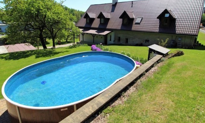 Comfortable house detached. On the outskirts, 2.3 km from the centre of Černý Důl, in a quiet, sunny position, 1.5 km from the lake, 3 km from the skiing area. Private: property, swimming pool round (seasonal availability: 01.Jun. - 30.Sep.). Terrace, garden furniture, barbecue, fireplace, parking (for 2 cars) on the premises. Grocery 3 km, supermarket 7.5 km, restaurant 200 m, bus stop "Černý Důl, Čistá-pošta" 200 m, sandy beach 1.5 km, indoor swimming pool 19 km. Golf course (18 hole) 14 km, tennis 2.5 km, sports centre 2.5 km, walking paths from the house, cycle lane 100 m, ski lift 3 km, chair lift 3 km, slopes 3 km, ski rental 3 km, ski bus stop 100 m, ski school 3 km, children's ski school 3 km, sled run 7 km, cross country ski track 10 m. Nearby attractions: Janské Lázně Spa 9 km, Vrchlabí 10 km, Aquapark Trutnov 25 km, Zoo Safari Dvůr Králové 29 km, Bozkovské jeskyně 37 km, Adršpašské skály 44 km. Well-known ski regions can easily be reached: Černý Důl 3 km, Herlíkovice 15 km, Pec pod Sněžkou 20 km, Špindlerův Mlýn 26 km. Well-known lakes can easily be reached: Čistá 1.5 km, Vrchlabí 9 km. Hiking paths: Sněžka 25 km.