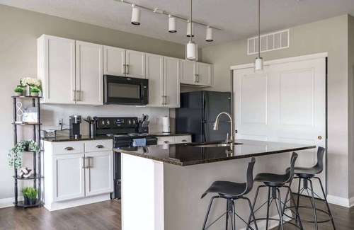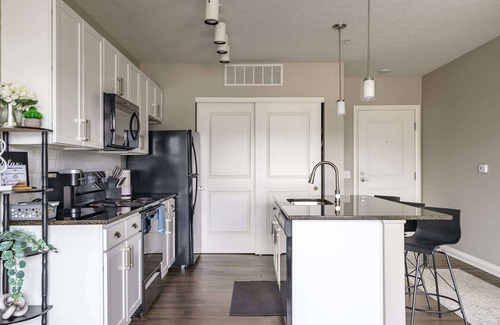 This beautiful, 600 sq ft modern and open-floorplan one bedroom apartment is conveniently located just across the Olentangy River from downtown Columbus. The apartment is close to all the excitement that the city has to offer without the hustle and bustle of downtown living. This apartment is ideal for a couple or small groups to eat together, hang out, relax, explore the surrounding areas. There are several bars, restaurants, and retail spaces within walking distance!