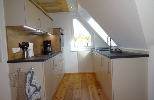 Family-run house in a quiet, sunny location on the edge of town. We have made furniture from the old wood of the roof renovation. Unterkirnach is located on the eastern edge of the Black Forest, near the main center Villingen-Schwenningen. In just about an hour, you can reach Switzerland, Alsace, Lake Constance, Freiburg with its sights, or Europa-Park in Rust. Washing machine, iron, and ironing board are available to all holiday guests. A storage room for bicycles is provided. All guests may use the garden area. On request, we offer you a transfer to or from the VS-Villingen or St. Georgen train station. The apartments are intended exclusively for holiday stays; company bookings for business trips are unfortunately not possible. For stays of two nights or more, you receive the DreiWelten Card free of charge.