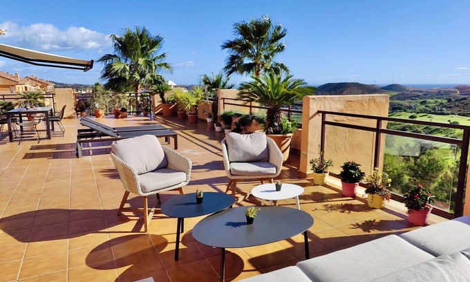 Best-rates for the Mijas apartment starts from $1,759 per night with includes Wellness Facilities, Wheelchair Accessible, Ocean View, Accessibility, Bedding/Linens, Pool, Security/Safety, Child Friendly, Fireplace/Heating, Barbecue/Outdoor Cooking, TV, View, Balcony/Terrace, Oceanfront, Internet, Air Conditioner, Kitchen, Laundry StayAndPlay offers fully equipped golf villas, golf hotels, golf resorts, luxury golf cabins, and exclusive golf retreats, making it easier than ever to find your perfect golf escape — ideal for families, peaceful getaways, or pet-friendly retreats with the whole crew.