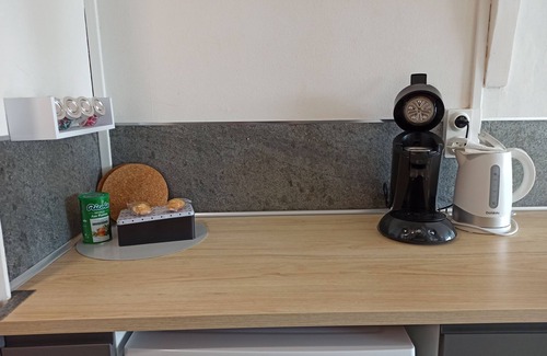 Prepare a home-cooked meal in the kitchen, complete with a stovetop and a refrigerator, as well as an electric kettle, cookware, and a toaster. Bathroom amenities include a hair dryer, towels, and toilet paper. And because there's a washing machine, you can go a bit lighter on your packing. Other amenities include a desk, an ironing board, heating, and wardrobe or closet.