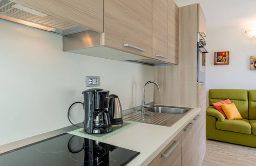 "Nonni", 4-room apartment 57 m2, on the ground floor, south facing position. Renovated in 2018, comfortable and modern furnishings: living/dining room with dining table and satellite TV. Exit to the terrace. 1 room with 1 french bed (160 cm). Exit to the garden. 1 room with 1 bed and 1 pull-out bed. 1 room with 1 bed. Open kitchen (oven, dishwasher, 4 induction hot plates, toaster, kettle, freezer, electric coffee machine). Shower/WC, sep. WC. Gas heating. Terrace, garden, lawn. Terrace furniture, deck chairs (4). Facilities: children's high chair, baby cot. Internet (WiFi, free). Parking at the house. Please note: non-smokers only. Private entrance. IT014046C2RCC5J4SS