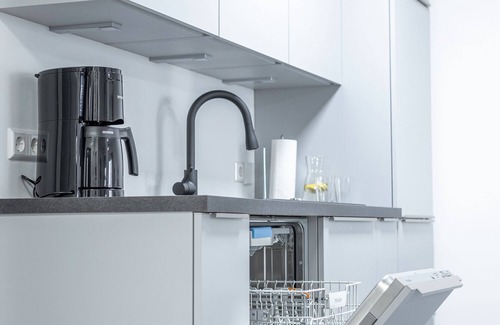 With this special accommodation, shopping facilities and the bus connection are just a few minutes' walk away. The apartment is located in the second row to the street, therefore very quiet and has a unique distant view. In order to enjoy these advantages, however, a few stairs must be climbed to the apartment, so it is not suitable for people with a walking disability. A walk-in shower, high-quality fitted kitchen with cooking and dining area island, large bed (180x200), sauna are a few of the many highlights. There is a locked storage area for bicycles and e-bikes. On the day of check-in, the tourism and climate protection tax of 5.6% of the "gross" overnight price is charged, which must be paid personally to the host at check-in.