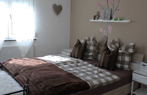 Equipment: Size approx. 90 m2 & 20 m2 covered terraceInternet access via WLANGround floor apartment with 3 rooms in a two-family house. Travel cot for baby possible on request. Entre: hall with wardrobe, mirror and shoe cabinet. Living room: Comfortably furnished room furnished in country styleLCD TV, DVD player, (small selection of videos) satellite receiver, stereo (with a small CD selection), small selection of books and games. Kitchen: dishwasher, ceramic hob, fridge freezer, microwave, Saeco coffee machine, toaster, kettle, crockery, glasses, cutlery, pots, pans and a small selection of spices and tea. Bedroom 1: double bed (180 x 200, 2 wardrobes, safe, full length mirror, chair and table. Bedroom 2: sofa bed (140 x 200), desk, desk chair, wardrobe. Bathroom with separate toilet: daylight bathroom with bathtub, towels included. Terrace: 4 chairs with seat cushion, table, 2 chairs, 1 parasol.