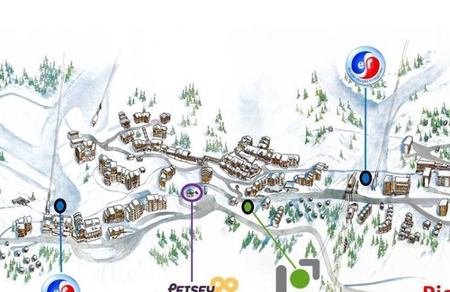 Residence Pierramenta: Residence located on Plan Peisey after the Vanoise Express, the 3rd residence along the road. Access to the slopes is by following the road and up the stairs that lead to the snow front of Plan Peisey. Access to the Vanoise Express and the Plan Peisey chairlift. Ski slopes: 200 m (about 3 min walk) Ski school: 200 m Top resort centre: 130 m (about 2 min walk)