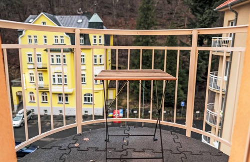 Modern apartment block, 4 storeys, built in 2023. In the centre of Jáchymov, 2.5 km from the skiing area. In the house: lift, central heating system. Breakfast on request (extra). Storeroom available. Parking at the house. Grocery 100 m, supermarket 150 m, shopping centre 6 km, restaurant 100 m, pub garden, bus stop "Jáchymov" 150 m, outdoor swimming pool 15 km, indoor swimming pool 150 m. Walking paths from the house 10 m, cycle lane, chair lift 2.5 km, slopes 2.5 km, ski rental 2.5 km, ski bus stop 30 m, ski school 2.5 km, cross country ski track 5 km, ice rink 6 km, children's playground 500 m. Nearby attractions: Aqua Centre Agricola 500 m, Spa&Wellness Centre 500 m, Boží Dar 8 km, Karlovy Vary 20 km, Oberwiesetnhal 13 km, Annaberg-Buchholz 33 m. Well-known ski regions can easily be reached: Klínovec 2.5 km, Plešivec 13 km, Fichtelberg 11 km. Hiking paths: Krušnohorská magistrála, Ježíškova cesta. Please note: baby equipment on request (extra). Smoking is prohibited in all areas of the building and, with the exception of the ground floor, the use of ski boots is also prohibited.