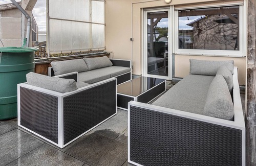 The apartment has a large private terrace (partly covered) where you can relax in the evening.