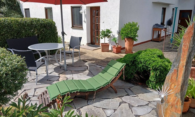 Enjoy your own garden and the furnished, uncovered terrace with barbecue – ideal for outdoor meals and relaxation. The apartment is quiet and sunny and offers a separate entrance for your privacy.