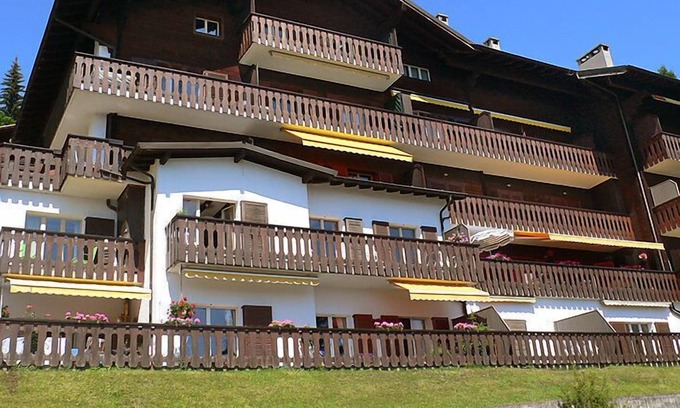 Cosy residence "Régina A, B, C, D". On the outskirts, 900 m from the centre of Villars, in a sunny position, south facing position. For shared use: property, indoor pool (8 x 4 m, depth 100 - 140 cm). Tennis. In the house: sauna (extra). Washing machine, tumble dryer (for shared use, extra). Room cleaning weekly on request (extra). Motor access to the house. Communal covered parking, public parking. Shop 900 m, grocery 650 m, restaurant 250 m, bus stop "Villars" 650 m, railway station "Arveyes" 400 m, thermal baths "Lavey-les-bains" 19 km. Golf course (18 hole) 8 km, indoor tennis centre 2.3 km, sports centre 2.3 km, mountain railway 800 m, gondola lift 2.4 km, ski bus stop 20 m, ski school 900 m, children's ski school 2.3 km, ice field 1.4 km. Please note: ski bus (free of charge). There are more similar properties for rent in this same residence.