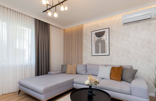This modern and elegant bedroom apartment is decorated to accommodate 4 people. The apartment consists of a living room with a kitchenette, a bedroom and a bathroom with a shower. Tasteful interior design in gray with the use of wooden parquet flooring and comprehensive equipment guarantee an unforgettable stay. The apartment also has access to a furnished terrace with a garden, allowing guests to enjoy sunbathing and relaxing outdoors. Guests can park their car in a private parking space in the underground garage, an advantage especially during the tourist season.