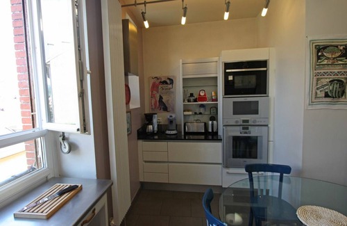In the heart of town, close to the train station, spacious apartment giving access to many amenities: shops, bars, restaurants, pharmacy...