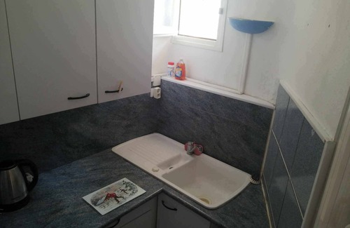 The kitchen is equipped with an oven, a stovetop, and a refrigerator, as well as a coffee maker, an electric kettle, and a microwave. And there is a laundromat nearby so you can pack a bit lighter. Other amenities include a dining area, heating, and a dining table.