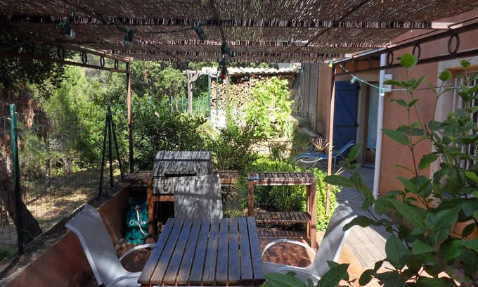 Charming garden level of an architect's villa in a quiet area, in a green setting, located 15 minutes walk from the sea and surrounded by the hill. This T3 is perfect for a quiet holiday, with direct access to the hill and close to shops.
