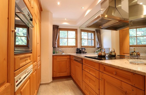 The holiday apartment features a spacious and tastefully furnished living room with a comfortable seating area and TV. From the living room, you can access the balcony with a beautiful view of the Corvatsch. Next to it, you will find a round bench with a dining table and the open kitchen, which is equipped with modern appliances. The apartment has three bedrooms and two bathrooms. The master bedroom is fitted with a double bed and an en-suite bathroom with a bathtub. The other two bedrooms have one double bed and two single beds, respectively, and share a bathroom with a shower. The apartment includes a ski room and a shared laundry room. The kitchen also has a private washing machine. Two garage parking spaces can be rented for an additional fee.