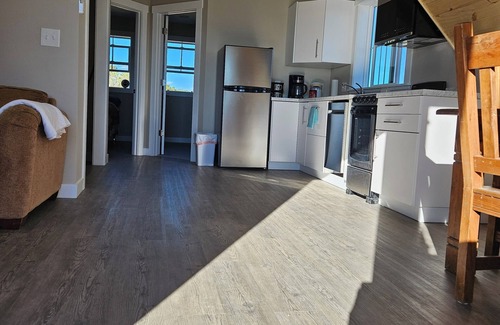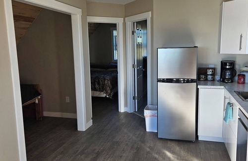 Less than a mile down the private dirt road sits this fully furnished one-bedroom apartment with a full kitchen, bathroom with a walk-in shower, a bedroom with a queen bed, and an additional small room with a twin bed and a twin trundle (this room does not have a door). Will sleep 4 people comfortably, and a fifth if someone wants to sleep on the couch (not a pullout couch). Access to the apartment is up a wooden staircase. Residence is NOT ADA-ACCESSIBLE.