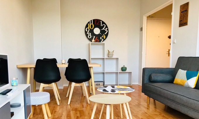 This charming studio of 32 m², can accommodate two people, furniture and decoration design and modern, the most is a balcony overlooking the famous Cathedral of Chartres. It is the ideal place to rest quietly after a day of discovery or work. The kitchen is independent and very functional; it is equipped with one, four, a kettle, a hob. The bathroom has a shower. This apartment is located on the 5th and last floor with elevator, a stone's throw from the city centre and the train station. Wifi is at your disposal in the apartment.