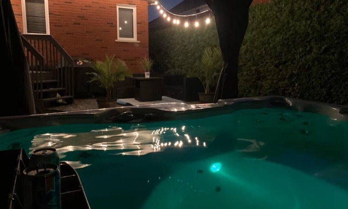 Your Montreal and surrounding area adventure begins at our 2-bedroom apartment. The space features 1 queen bed, 1 full bed, a kitchenette and a full bathroom, perfect for your family or a small group of guests. Amenities like Air Conditioning, WiFi, a small dining table and even a private backyard with a hot tub will make your stay comfortable and convenient. The bathroom is equipped with a shower and additional amenities. Experience a superb and cool stay in this serene apartment. We look forward to welcoming you to our place.