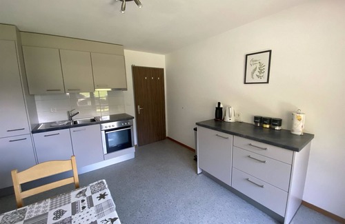 3.5-Room Apartment for 4 People – Perfect for Families This charming 55 m² apartment comfortably accommodates 2 adults and 2 children. The cozy living room features a comfortable seating area, TV, DVD player and a sunny south-facing balcony, perfect for relaxing. The closed, well-equipped kitchen includes a dining table and also provides access to the south-facing balcony. Amenities include a dishwasher, a Nescafé Dolce Gusto coffee machine, fondue set and raclette grill – ideal for cozy evenings. The sleeping areas consist of a spacious double bedroom and a smaller children's room with bunk beds. The small bathroom is equipped with a shower and toilet. Free Wi-Fi is available throughout the entire house. The apartment is non-smoking.
