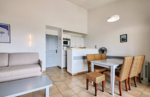 Activities around the pool all season (planning according to the period) Car park : Free parking - subject to availability. bowling Possibility of bike rental : Rental in reception - limited quantity - with surcharge (only in summer) Near airport : Marseille Provence Airport #MRS (151.0 km), Beau-Côte d'Azur Airport #NCE (82.5 km) Restaurant : Open from 17/04 to mid-September (subject to government announcements) Tourist tax (surcharge) : Payment of the residence tax is made via your personal area: https://my-compte.maeva.com, the amount varies according to the locality. Free for children under 18. Television : Depending on housing Tennis : 3 porous concrete tennis courts located near the residence - with surcharge: 10€/hour. Multisports ground : City Stadium (beach volleyball court, football court, tennis courts...) - located in the residence. Pets Allowed : supplement kettle Coffee maker : Nespresso Deposit (in euros) : 500 Heating Air conditioner Cooked Floor : 2 Exposure : East Toaster Dishwasher Bedding : Extra charge. Final Cleaning : Extra charge. Must be completed at the end of the stay, either by the customer or by paying for the service at the pre-check-in or on arrival Microwave oven Number of cabins : 1 Number of bedrooms : 1 Number of pieces : 2 Number of bathroom : 2 Car park Communal swimming pool : Included. 2 Cooking plate Fridge Dining Room - Seating Capacity : 7 Surface (m²) : 43 Television Terrace Dishes and cutlery View : Sea