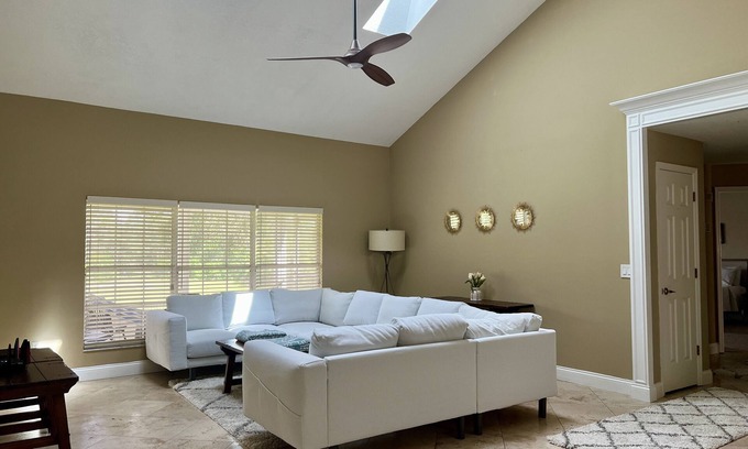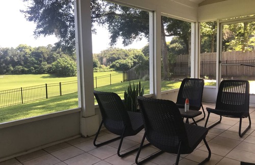 Big open green spaces outside and bright and airy with vaulted ceilings and abundant windows on the inside makes for a relaxing and serene environment. Sip your morning coffee watching the Sandhill cranes in the open pasture that's an extension of the spacious backyard.