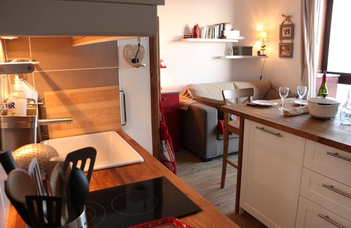 A fully equipped living room-kitchen (dishwasher, fridge, microwave, large sink, lots of storage space, TV, sofa), an alcove with double bunk beds (comfortable mattresses, quality pillow protectors), bathroom bathroom with bath, fully fitted entrance with large closet and wardrobe to keep all the equipment without cluttering the living room. Balcony with superb view of the resort, the slopes, the swimming pool. The little extras that make the difference: the comfort of bedding, quality dishes, new convectors, charming decoration, etc.