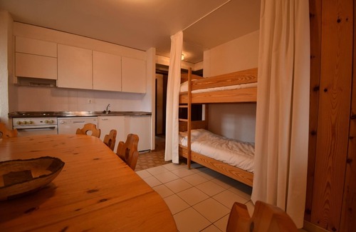 This apartment is the ideal location for mountain enthusiasts, offering a ski room with direct access to the famous slopes of the 4 Vallees. Wake up to the beautiful views of the Swiss Alps and discover what La Tzoumaz's Apres-ski has to offer. This apartment sleeps a total of four people. One double bed and a bunk bed makes this perfect for a family of four. The grocery store, restaurants, and bars are less than five minutes away on foot.