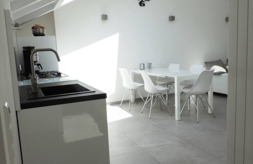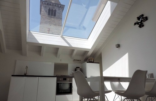 From the dining room and the kitchen you have a great roof window and a wonderful view of the church tower "campanile e tetto" of the church "San Vittore".