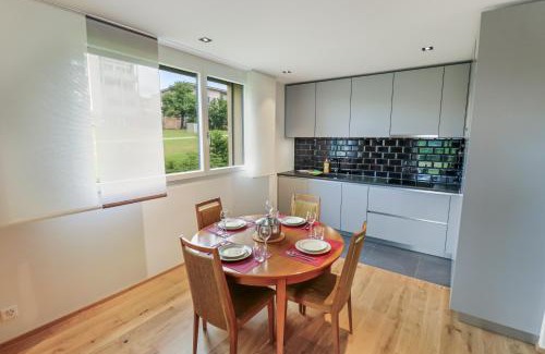 Appartement élégant avec terrasse privée offers accommodations in Villars-sur-Glâne, 3.4 miles from Forum Fribourg and 21 miles from Bern Train Station. This property offers access to a terrace and free private parking. The accommodation provides a 24-hour front desk and an elevator for guests. With free Wifi, this 1-bedroom apartment offers a flat-screen TV, a washing machine, and a fully equipped kitchen with a dishwasher and oven. Towels and bed linen are featured in the apartment. The property has an outdoor dining area. Outdoor play equipment is also available at the apartment, while guests can also relax in the garden. Bern House of Parliament is 21 miles from Appartement élégant avec terrasse privée, while University of Bern is 21 miles away. Bern-Belp Airport is 24 miles from the property.