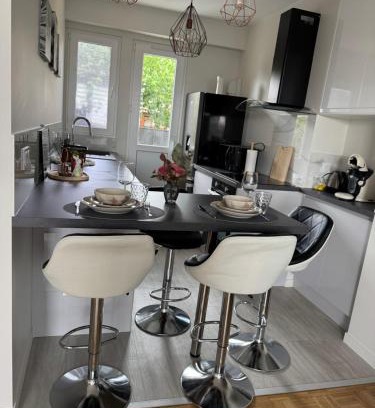 Appartement chaleureux et spacieux T3 offers accommodations in Limoges, 2.4 miles from Limoges Exhibition Center and 3.5 miles from ESTER Limoges Technopole. This property offers access to a balcony, free private parking, and free Wifi. Zénith Limoges Métropole is 3.6 miles from the apartment and Limoges Town Hall is 1.1 miles away. This apartment includes 2 bedrooms, a living room and a flat-screen TV, an equipped kitchen with a dining area, and 1 bathroom with a shower and a washing machine. Towels and bed linen are offered in the apartment. The property has an outdoor dining area. Limoges High Court is 1.4 miles from the apartment, while Limoges Golf Course is 2.7 miles from the property. Limoges – Bellegarde Airport is 5 miles away.