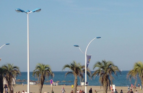 Appartement 60 m² RDC de villa en Front de Mer. Devant la villa, plage de sable fin en pente douce, idéal pour les enfants . Centre Ville à 500m. Appartement meublé pour 5 personnes. Toutes les pièces sont indépendantes (voir plan). TV française catalane et espagnole. WI FI gratuit. Barbecue. Electricité et eau facturées au tarif en vigueur. Draps, Couettes et Serviettes en option. Jardin dallé et ombragé 3 faces avec parking. Perpignan 10km, Collioure 20km, Espagne (Le Perthus) 35km. Andorre 100 km.