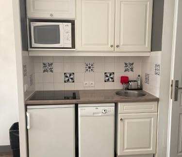Appartement Deauville avec piscine - Résidence du Golf is located in Deauville, just 1.6 miles from Deauville Beach and 1.4 miles from Deauville Casino. This property offers access to a terrace, free private parking, and free Wifi. Trouville-Deauville SNCF Railway Station is 1.8 miles from the apartment and Port Morny is 1.9 miles away. The apartment consists of 1 bedroom, a living room, a fully equipped kitchenette with a dishwasher and a coffee machine, and 1 bathroom with a bath and a hair dryer. Towels and bed linen are offered in the apartment. The property has an outdoor dining area. Guests can enjoy the outdoor swimming pool and garden at the apartment. Deauville Racecourse is 1.5 miles from Appartement Deauville avec piscine - Résidence du Golf, while Promenade des Planches is 1.6 miles from the property. Deauville - Normandie Airport is 4.3 miles away.