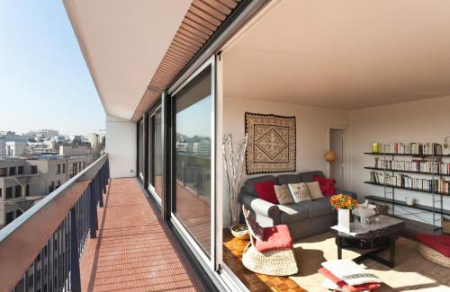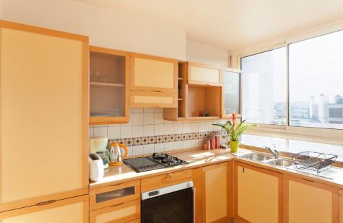 This apartment is set in the chic 14th arrondissement of Paris, 1476 feet from the Saint-Jacques Metro Station. It features a modern décor and opens up to a private balcony, offering garden views. The bright and airy apartment includes a lounge area with a flat-screen TV, cable channels and a DVD player. Free Wi-Fi internet is provided, and the apartment offers 2 bedrooms with parquet flooring. Appartement le Méridien consists of a fully equipped kitchen with a microwave, a refrigerator and a dishwasher. Meals can be enjoyed in the dining area. The Denfert-Rochereau Metro Station is 2133 feet from the apartment and Tour Montparnasse is 1.2 mi away. The apartment is 1.2 mi from Luxembourg Gardens and 3.8 mi from the Eiffel Tower.