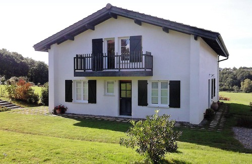 This cozy apartment is on the ground floor in a beautiful traditional Basque house. In a fantastic location with breathtaking views of the Nivelle valley, with beautiful green surroundings. The house is sunny with a large garden surrounded by nature, meadows, the forest and mountains . Located 8 km from St. Jean de Luz and the coast, you can choose every day between the sea and the mountains. The charming village of Ascain is 3 minutes away. You will find plenty of information at our site baskenreisen.
