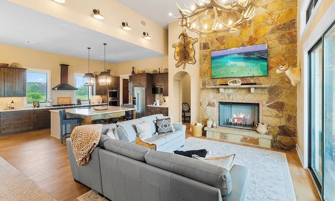 Welcome to Twin Hills River Ranch, a new hill country destination offering the ultimate retreat for outdoor enthusiasts and hunters. A 6-bedroom luxury estate in the heart of Texas overlooking the picturesque Colorado River, can accommodate 20+ guests. Home will sleep 20 in beds set up, we also have a couple of twins tucked in closets should you need additional bedding. Situated on nearly 80 sprawling acres of pristine land, this exclusive property is a haven for large families or groups seeking adventure and relaxation.
