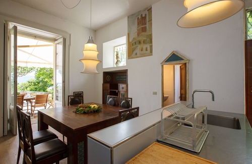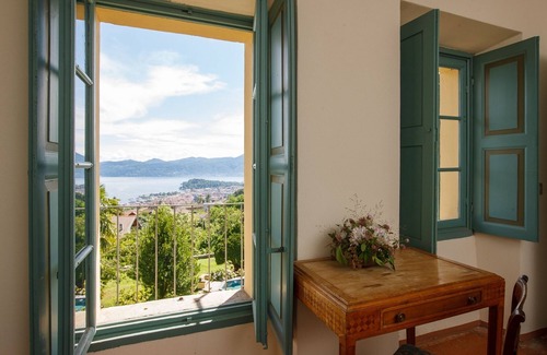 The charming "Villa San Martino" is part of a former convent from the 17th century. Century, which was acquired by the great-grandfather of today's owner and converted for the family. The extraordinary interior design makes it easy to recognize today that three generations of architects have realized their ideas here. The harmonious interplay of original elements from the period of origin, antique furniture, old ceiling and wall paintings as well as modern design give the entire ambience a unique character. Here, on the one hand, you can find the baths of Phillipe Starck, while at the same time you can literally embed your head in the truest sense of the word on the so-called "cardinal bed". The approx. 250 m² living space extends over the entire ground floor as well as the first floor. It consists of an approximately 40 m�� large living room with bodentiefen Panoramaschiebetüren, a dining- and Kaminzimmer, a separate Wohnküche, 4 bedrooms, 3 bathrooms and a guest toilet. The spacious garden offers various terraces with different terraces, where you can enjoy your own rhythm and read, sunbathe, enjoy the wonderful view of the lake or barbecue. The six-seater refreshment basin (open from 01. 06. to 30. 08.) is about 3 m x 3 m x 1.30 m and is located slightly below the sun terrace. On hot days, a bath here is wonderfully refreshing. For those who prefer physical activity, the area can be explored by foot on a wide network of wonderful walking and hiking trails, or you can relax with a game of golf about 3 km above in Premeno. There is a public swimming pool about 1 km away and the town of Intra with its restaurants and shops, its public lido and the lakeside promenade in just 10 minutes by car. In the upper part of the house is a small apartment, which is used by the tenants only sporadically. There is free public parking next to the entrance gate. You can drive to the property for loading and unloading. Layout: Ground floor: Entrance area Approx. 40 m² living room with SAT-TV, bodentiefene Panoramaschiebbetüren and exit to the sun terrace approx. 16 m² dining room with wall paintings and beautiful lake view Fireplace room with seating for 8 persons and exit to the sun terrace (fireplace only for decoration) Very well equipped separate kitchen with dishwasher and exit to the sun terrace bathroom with shower and window as well as a separate guest toilet with Washbasin Storage room with washing machine Approx. 150 m² sun terrace with large awning as well as dream view and exit into the approx. 800 m² terraced garden with palm trees, wisteria and camellias as well as an approx. 3 mx 3 mx 1.30 m large hexagonal refreshment basin Wash basin and exit to the sunbathing bedroom with 2 single beds, which can also be placed next to each other and exit to the sunbath as well as 2. friendly and modern designer bathroom en suite with shower, bidet and window 2. Bedroom with "cardinal bed" (through mattress), fireplace (only for decoration) as well as window overlooking the garden and fantastic view of the lake 3. Bedroom (passageway) with 2 single beds which can also be arranged side by side as well as windows with a view of the garden and a fantastic view of the lake 4. Bedroom with 2 single beds, which can also be placed next to each other (separate entrance with exit to the balcony) 3. friendly and modern designer bathroom with bath and shower, bidet and window Approx. 20 m² large covered sunbathing balcony with a fantastic view of the lake, Pallanza and terraced garden