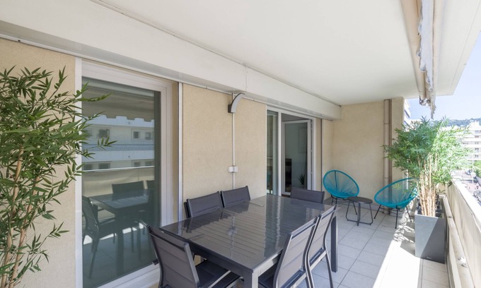 Ideal for delegates and holidaymakers (15 minutes walk from the Palais des Festivals and beaches), this 4-room apartment of more than 90m² has been tastefully renovated and can comfortably accommodate 6 to 8 people. Air conditioning in all rooms. 2 terraces.