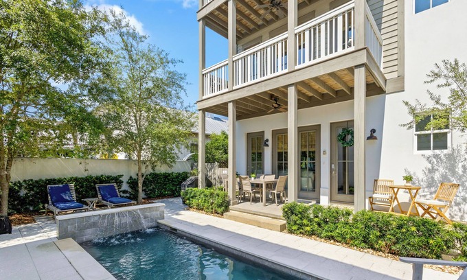 This oasis is conveniently nestled steps from Rosemary Beach in Inlet Beach. Après Beach is a spacious 5 bedroom, 2314 sq ft home that is perfect for adult groups or families with kids. The relaxed coastal feel is inviting and you will feel at-home in the open-concept living, dining and kitchen areas. You will love preparing your favorite meals in the fully stocked kitchen. Multiple balconies overlook the backyard oasis with a private pool. With on-site parking for 3 vehicles—plus 6 complimentary adult bikes—exploring the local shops, dining spots, and entertainment of Rosemary Beach is a breeze!