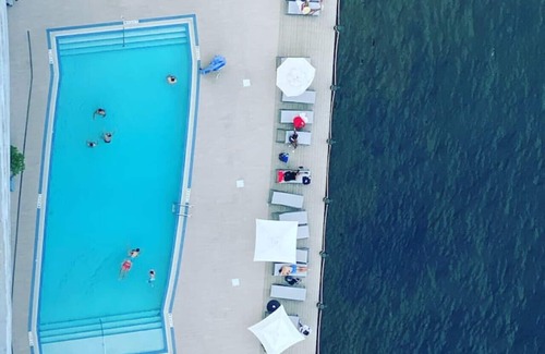 Piscina climatizada junto al canal. Vista exclusiva desde la piscina.
