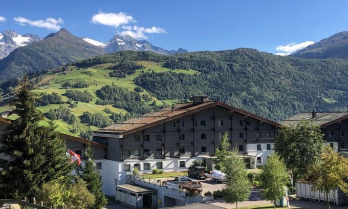 Apartment block "Utoring Acletta", 1'250 m a.s.l.. Above Disentis, in the resort, 2 km from the centre, in a quiet, sunny position on a slope, 700 m from the skiing area. For shared use: indoor pool (24 m2, depth 170 cm). Children's playground. In the house: reception, lounge, table tennis, lift, storage room for skis, central heating system, washing machine, tumble dryer (for shared use, extra). (extra). Motor access to the house (mountain road). Communal covered parking. Dimension: height 195 cm. E-charging station. Shop, supermarket, restaurant 700 m, bus stop "Disentis/Mustér, Pendicularas" 500 m, railway station "Disentis" 2 km. Cable car, ski lift, skisport facilities, slopes 700 m, ski bus stop 50 m, ski school 500 m, cross country ski track 1.5 km, children's playground 1 km. Well-known ski regions can easily be reached: Ski Arena Andermatt/Sedrun/Disentis. Please note: Additional accommodations can be booked. All houses/apartments are individually designed/furnished. Children's ski school near the house. The house and cable car can be reached on skis when there is enough snow. 1 garage space free of charge (max. height 1.95 m), additional garage space CHF 20.00/week. Reception opening times: Monday/Wednesday/Friday: 6:00 p.m.-6:30 p.m., Saturday 8:30 a.m.-9:30 a.m. and 4:00 p.m.-5:30 p.m., Tuesday/Thursday/Sunday closed.